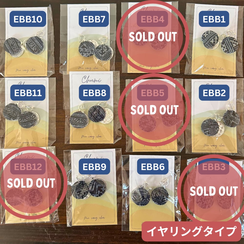 藍染め布とシルバー(アルミ製)のコインを使用。部品部分には、亜鉛合金を使用しておりますので、金属アレルギーの方は着用をお控えください。少数民族モン族の文化を感じることができるアイテムです。製造はベトナムのムーカンチャイで、モン族の伝統的な技術によって1つ1つハンドメイドで作られています。