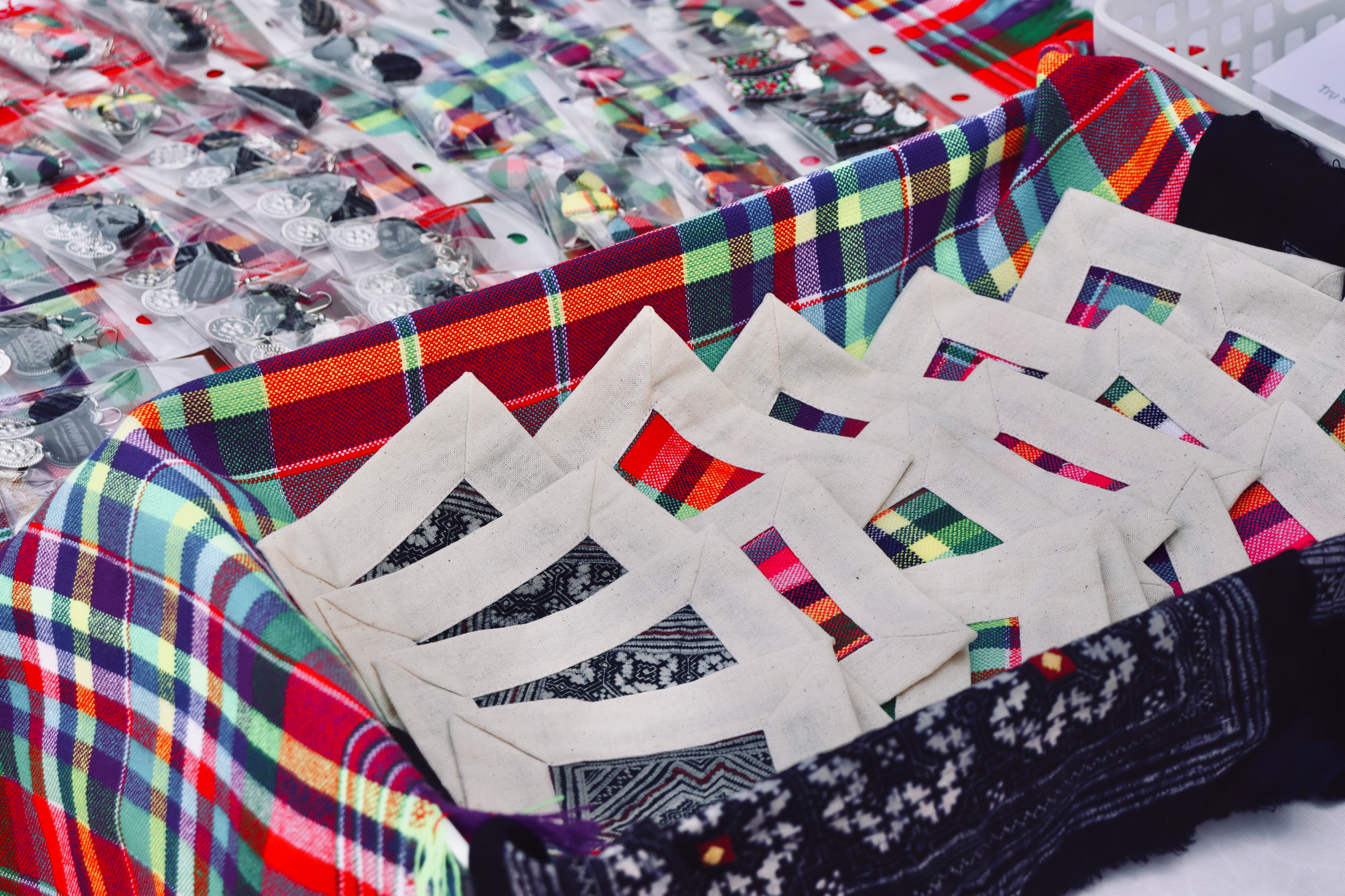 使用されている素材はコットンで、職人の手による丁寧な仕上げが施されています。少数民族モン族の文化を感じることができるアイテムです。製造国はベトナムで、伝統的な技術によって1つ1つハンドメイドで作られています。