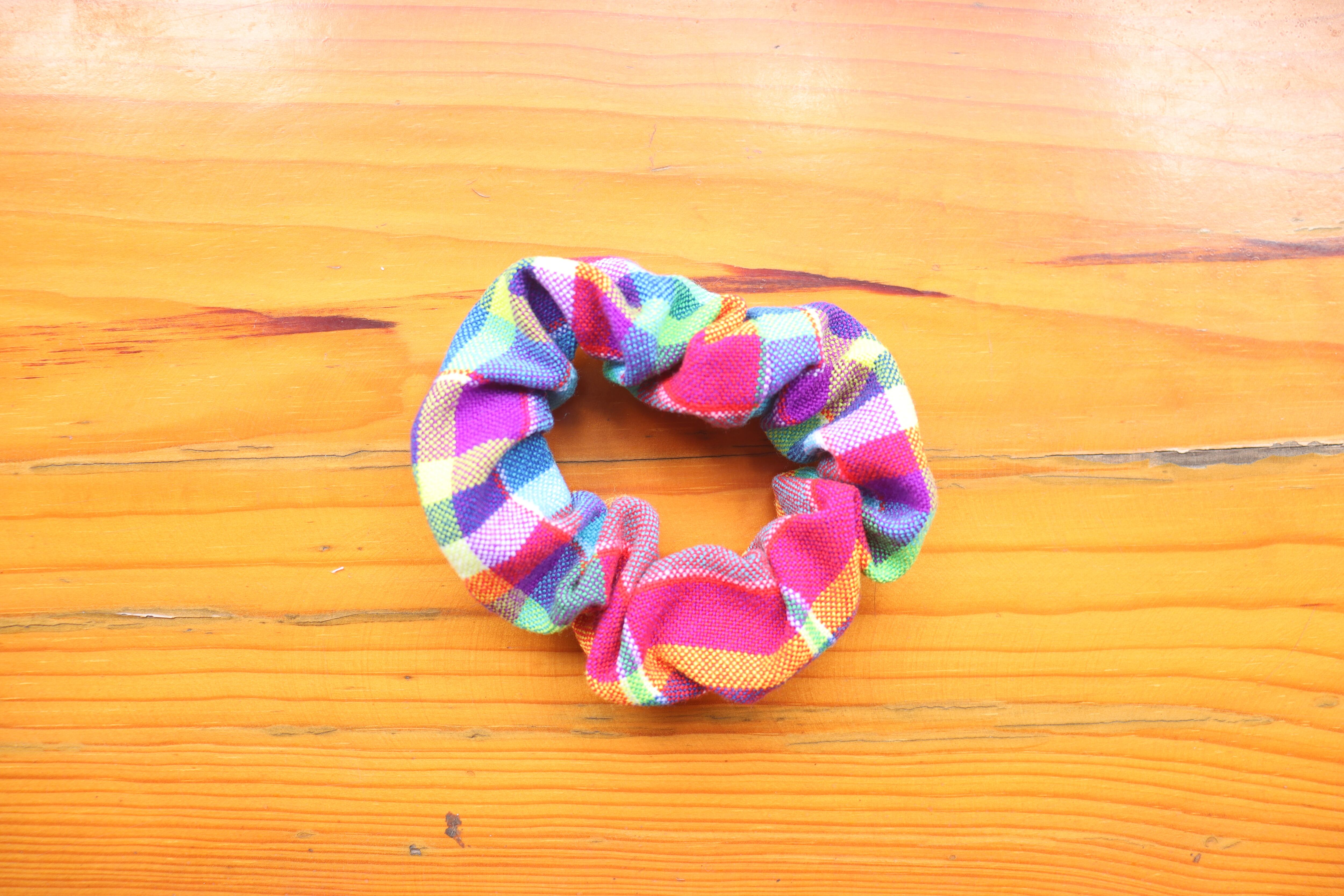 ベトナム北部ムーカンチャイの、少数民族モン族の女性による手仕事から生まれた特別なシュシュです。鮮やかなチェック柄の手織り布が特徴的で、カラフルで華やかなデザインが魅力。あなたの髪型に彩りを添え、表情を明るく見せてくれます✨